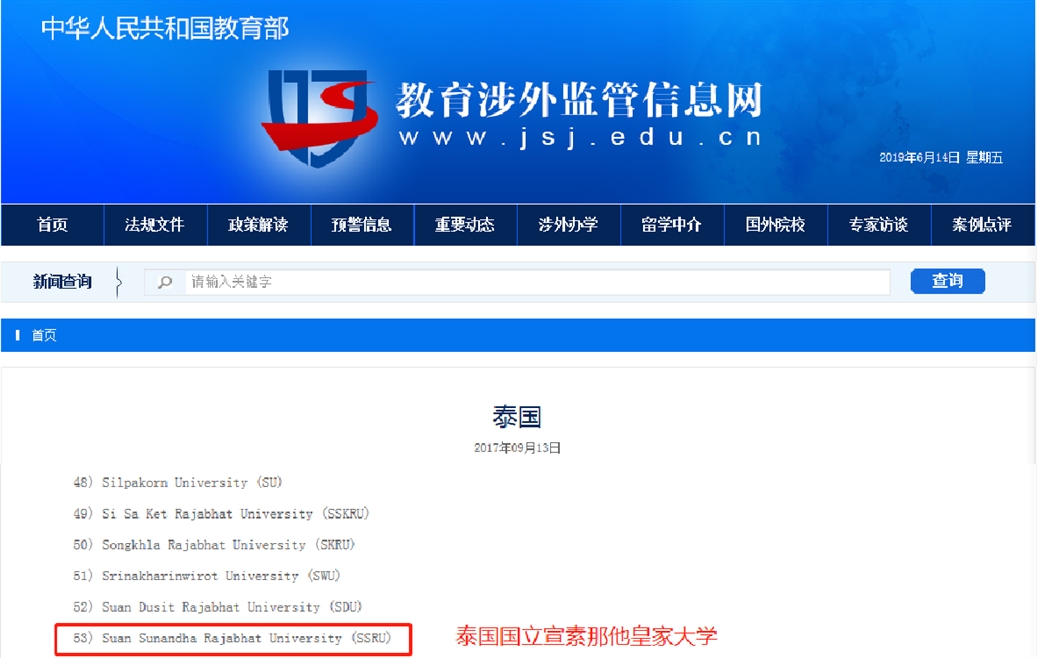 泰國國立宣素那他皇家大學(xué)(SSRU)是全泰國名列第一的皇家大學(xué),始建于1937年。學(xué)校設(shè)有14個學(xué)院以及附屬小學(xué)和附屬中學(xué)。大學(xué)有五大校區(qū),主校區(qū)坐落于首都曼谷中心的宣素那他皇家園林,另外四個校區(qū)分別是佛統(tǒng)校區(qū)、拉廊校區(qū)、夜功校區(qū)和烏汶校區(qū)。大學(xué)現(xiàn)有全日制本、碩、博在校生30000余名。