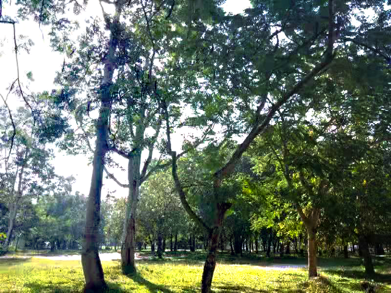 宿舍區(qū)有一片小森林,郁郁蔥蔥,午后或者晚間,可以看到很多學生漫步其中,特別是夏天,漫步在這大片綠意下,感受習習涼風,整個人神清氣爽。