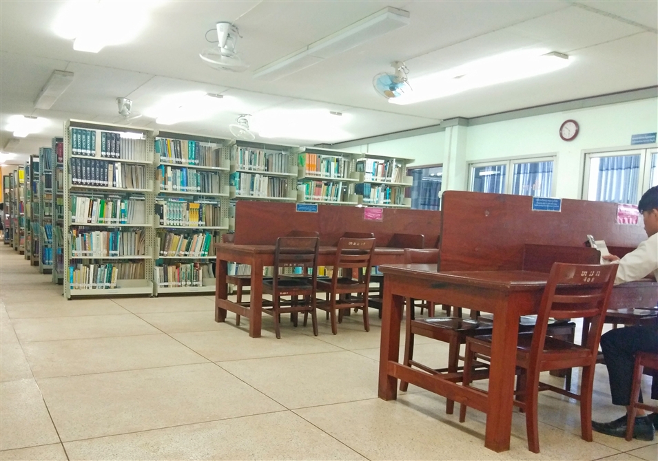 之前我們說老撾國立大學(xué)“低調(diào)奢華有內(nèi)涵”,教室和食堂桌椅是實木的,進(jìn)入圖書館之后,發(fā)現(xiàn)閱讀處的桌子也是實木的...不愧是木材資源豐富的國家。