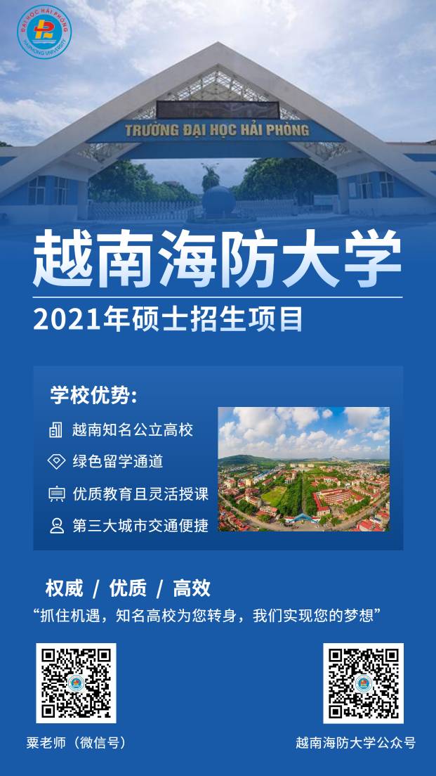越南海防大學是越南知名公立大學,地處越南第三大城市海防市,辦學歷史悠久,在教學、科研工作中取得了巨大成就,并與世界各國多所高校建立合作關系,開展語言、本科、碩士學歷層次服務,致力于培養(yǎng)國際化應用型人才。