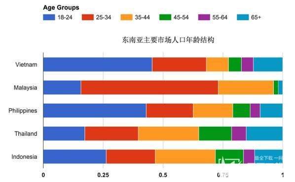 在中國,抖音的用戶主要來自于年輕人。 數(shù)據(jù)顯示,85%的抖音用戶的年齡都在24歲以下,抖音海外版Tik Tok在東南亞也不例外。據(jù)億邦動力網(wǎng)的數(shù)據(jù)分析,東南亞主要市場中18~24歲人口比例接近30%,遠遠高于中國的8%。