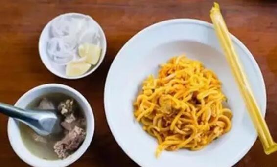 緬甸人喜愛(ài)“干”面小吃——從本質(zhì)上來(lái)說(shuō)其實(shí)是用面做的沙拉,配上肉湯——而其中最甘旨最遍及的一種即是nangyi thoke。這種小吃用雞肉、切成片的魚(yú)餅、豆芽和鹵雞蛋配上米線,十分好吃。質(zhì)料中加上烘焙的鷹嘴豆粉、姜黃粉和辣椒油,將這些配料搖勻,再加上腌菜和一碗肉湯,就功德圓滿了。