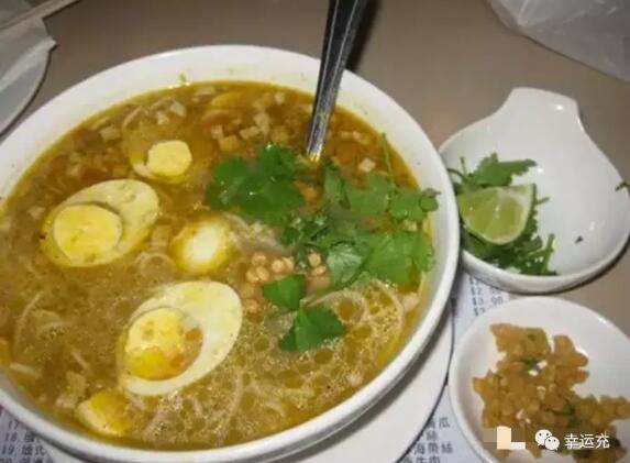 這種黏黏的黃色的粥一般伴米粉和腌制的雞肉或豬肉。粥上會(huì)淋一點(diǎn)辣椒油,配有腌菜和肉湯。這是一種盡管古怪可是十分招引眼球的組合,可是,如果你是一個(gè)熱愛(ài)香馥馥的滋味的吃貨,你一定會(huì)越來(lái)越喜愛(ài)它。
