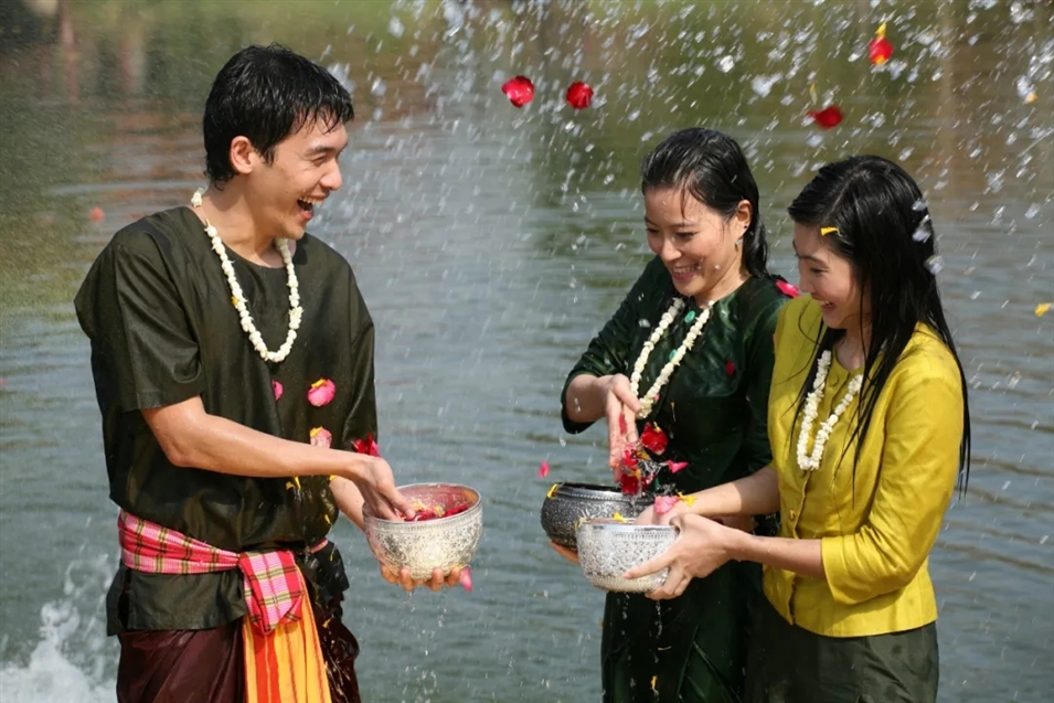 宋干節(jié)(The Songkran Festival)又名潑水節(jié),每年的4月13日到4月15日,歷時三天,是泰國文化中最重要的節(jié)日之一。泰國文化深受佛教文化影響,“宋干”兩字就來自梵文,意為“太陽運行到白羊座,既新的太陽年開始”。