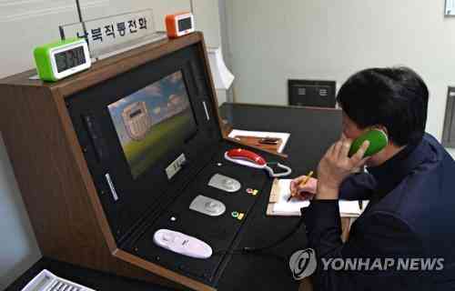 當地時間1月3日下午3點34分,在板門店聯合警備區(qū)聯絡事務所,韓方聯絡官拿起韓朝直通電話的話筒與朝方通話。(圖片來源:韓聯社)