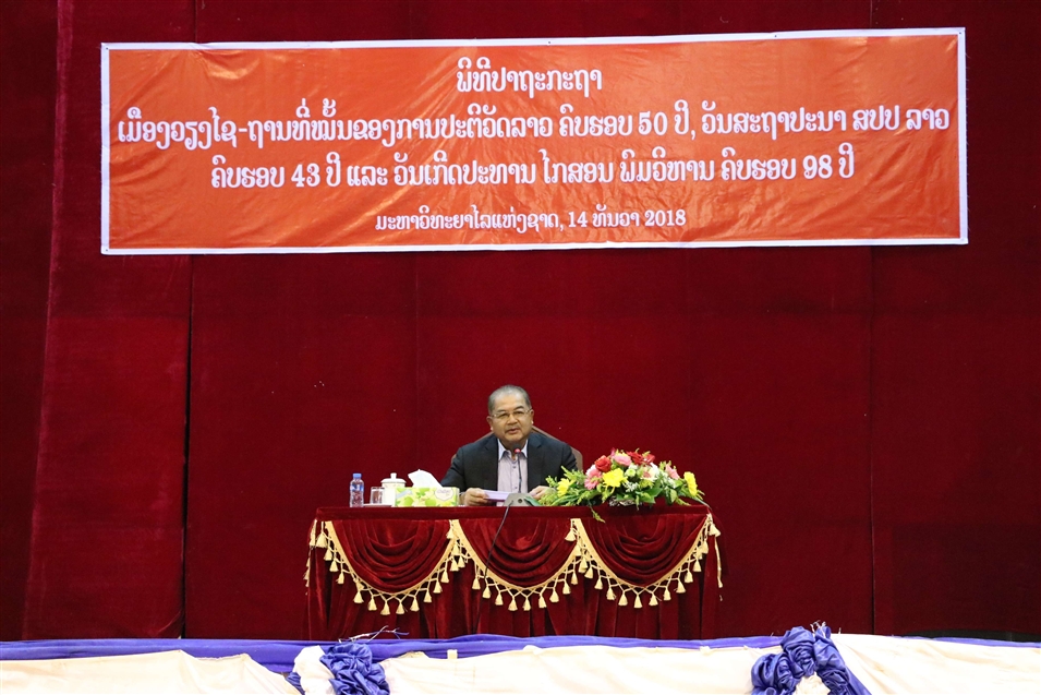 2018年12月14日,老撾國(guó)立大學(xué)組織師生收聽(tīng)“建立會(huì)曬市老撾革命根據(jù)地50周年”,“老撾人民民主共和國(guó)成立43周年”和“主席誕辰98周年”等重要講話。