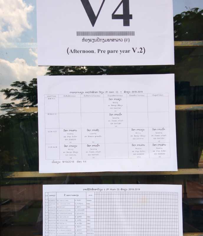 這是V4班的課程表,都是老撾文,所以大家也不用糾結(jié)了,就當走個形式,還是聽小編講解吧~