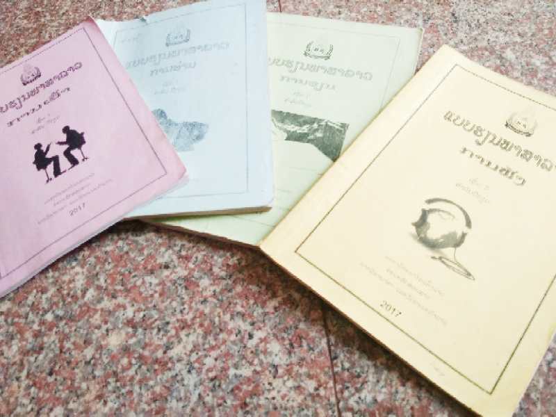 老撾語預科課程分為聽、說、讀、寫四科,分別由四位老師授課,每科課本分上下冊,各科的上課時間均為一個半小時,對,是連上一個半小時,中間沒有休息時間,跟國內(nèi)每節(jié)課45分鐘中間穿插10分鐘休息時間的模式還是有點差別的,不過授課時間跟國內(nèi)是一樣的,周一至周五。